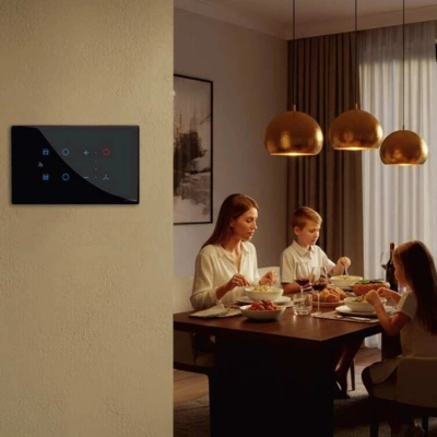 A modern control solution that allows users to manage lighting and appliances from centralized systems and wall-mounted touch panels